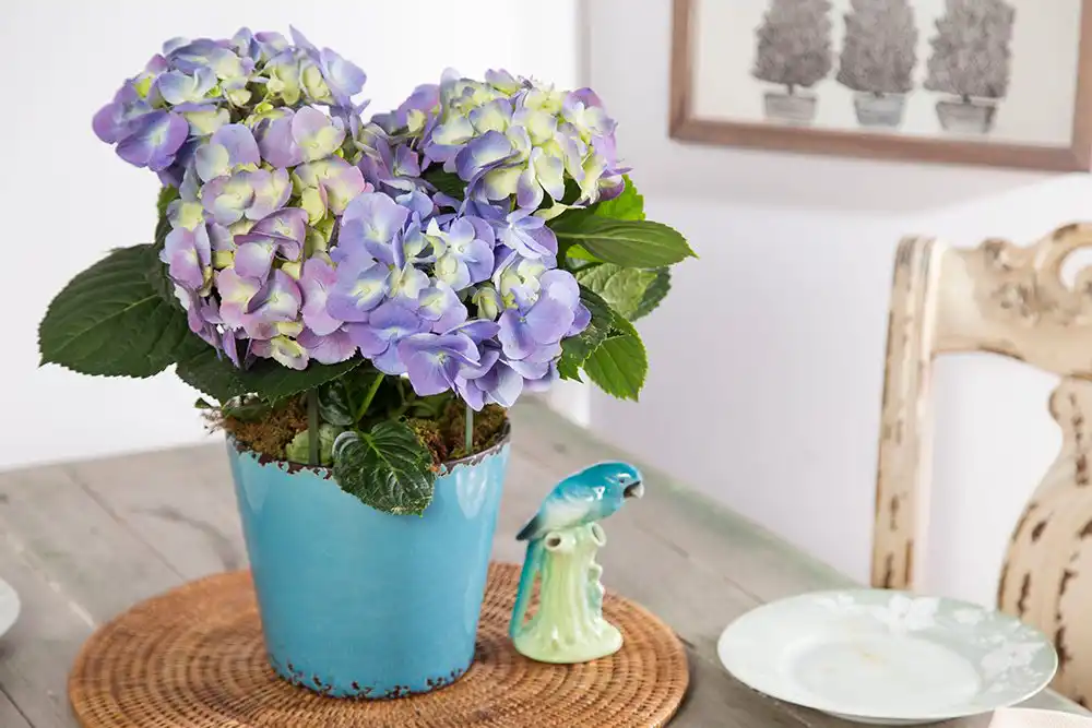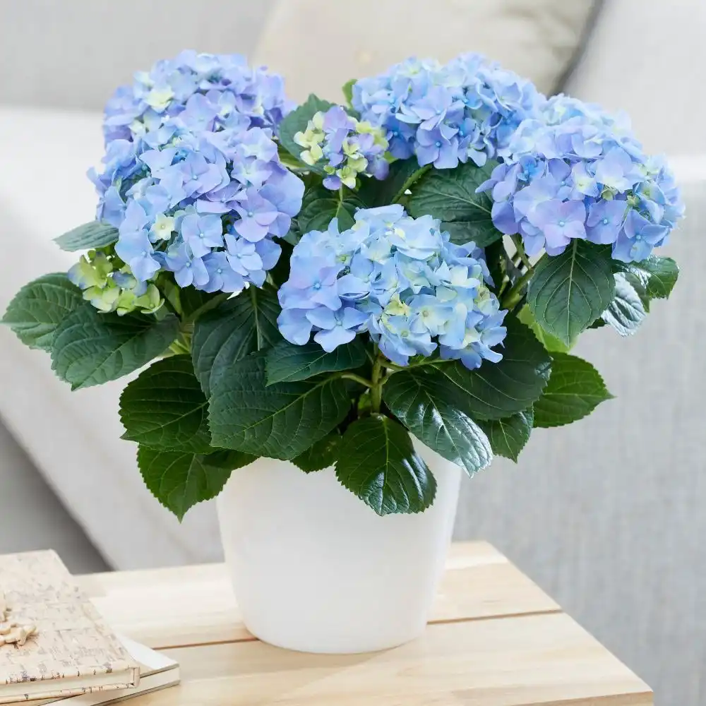 Розкішні блакитні забарвлення біля кімнатних гортензій можна зберегти лише тими самими способами, що й у садових гортензій – підтримуючи правильну кислотність ґрунту. Спеціальні добрива для блакитних гортензій, що містять алюміній або прості галун, які вносять замість звичайних підживлень, допоможуть посилити такі бажані небесні забарвлення.