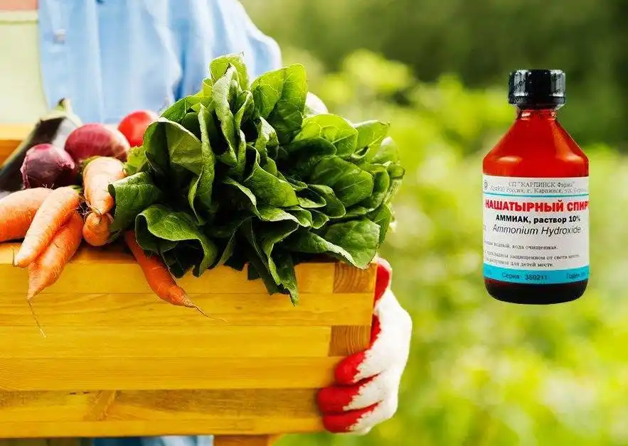 Нашатирний спирт для профілактичних кореневих підживлень квіткових та овочевих культур використовують у першій половині вегетації рослин із розрахунку 1-2 ст. ложки препарату на 10 л води.