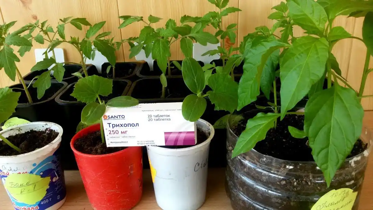 У 10 л води розчиняють 15 таблеток метронідазолу або трихополу і додають 10 мл зеленки. Зеленка у цій суміші виконує роль дезінфікуючого засобу у місцях ушкодження рослин.