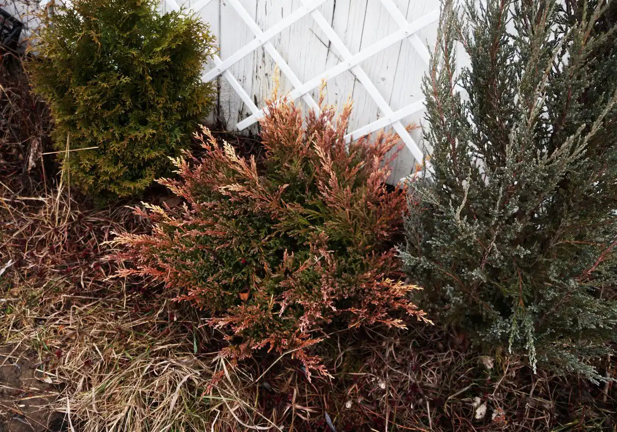 В одних видів та сортів подібні метаморфози можна віднести до мінусів, а в інших, навпаки, вважати позитивним моментом. Так, у більшості різновидів туї східної хвоя набуває похмурого буро-зеленого відтінку, і по-літньому смарагдовий колір зберігають тільки деякі сорти (наприклад, «Смарагд»). А ось у багатьох ялівців сезонна зміна забарвлення, залежно від виду та сорту, трапляється як на гірший, так і на краще.