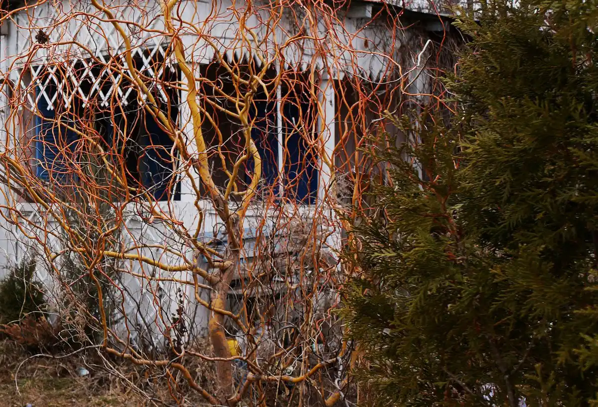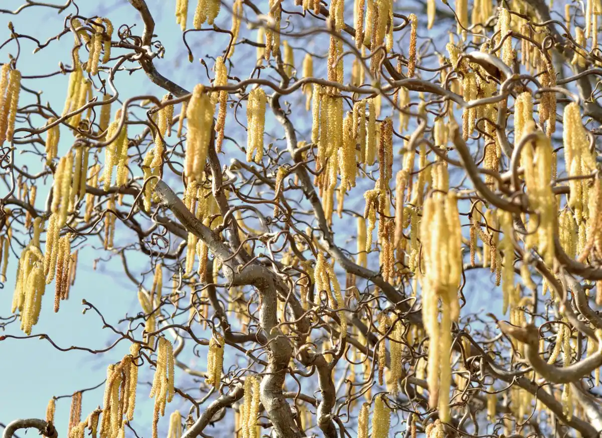 Ліщина «Конторту» не може похвалитися гілками яскравих відтінків, зате її звивиста форма виглядає дуже графічно та мальовничо, наче жива скульптура. До того ж, на початку квітня всі види ліщини випускають ошатні сережки і незабаром починають пиляти.