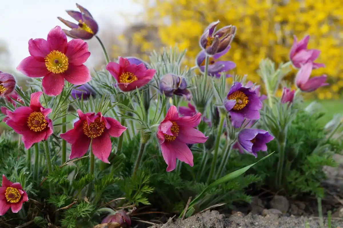 Цвітіння прострілу починається у квітні і може продовжитись у травні. Після цвітіння цієї рослини квітники прикрашатиме пишне різьблене листя. У висоту компактні кущики прострілу досягають не більше 25 сантиметрів, їх ажурне листя добре поєднуватиметься з рослинами, що мають цільну листову пластинку (наприклад, бадан).
