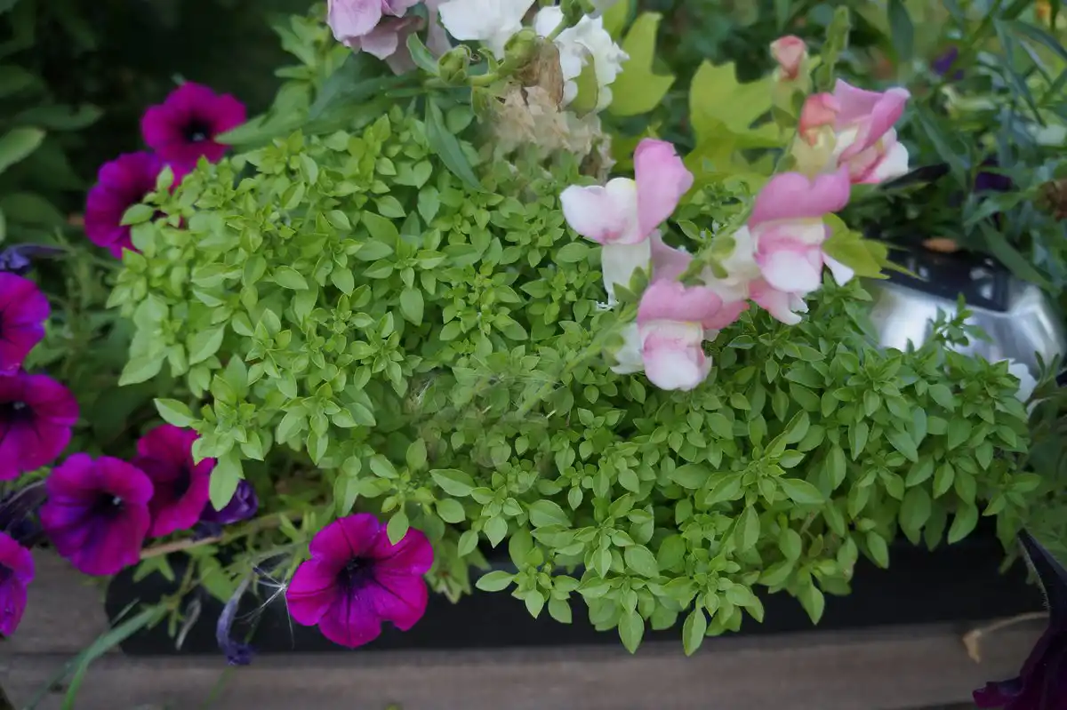 Але ще цікавіше скласти за його участю оригінальну квіткову композицію, висадивши прянощі по сусідству з однорічниками з квітками яскравих забарвлень – левову зіву, петунія, калібрахоа, немезія, вербена та інші. На клумбі карликовий базилік може бути оригінальним обрамленням квітника.