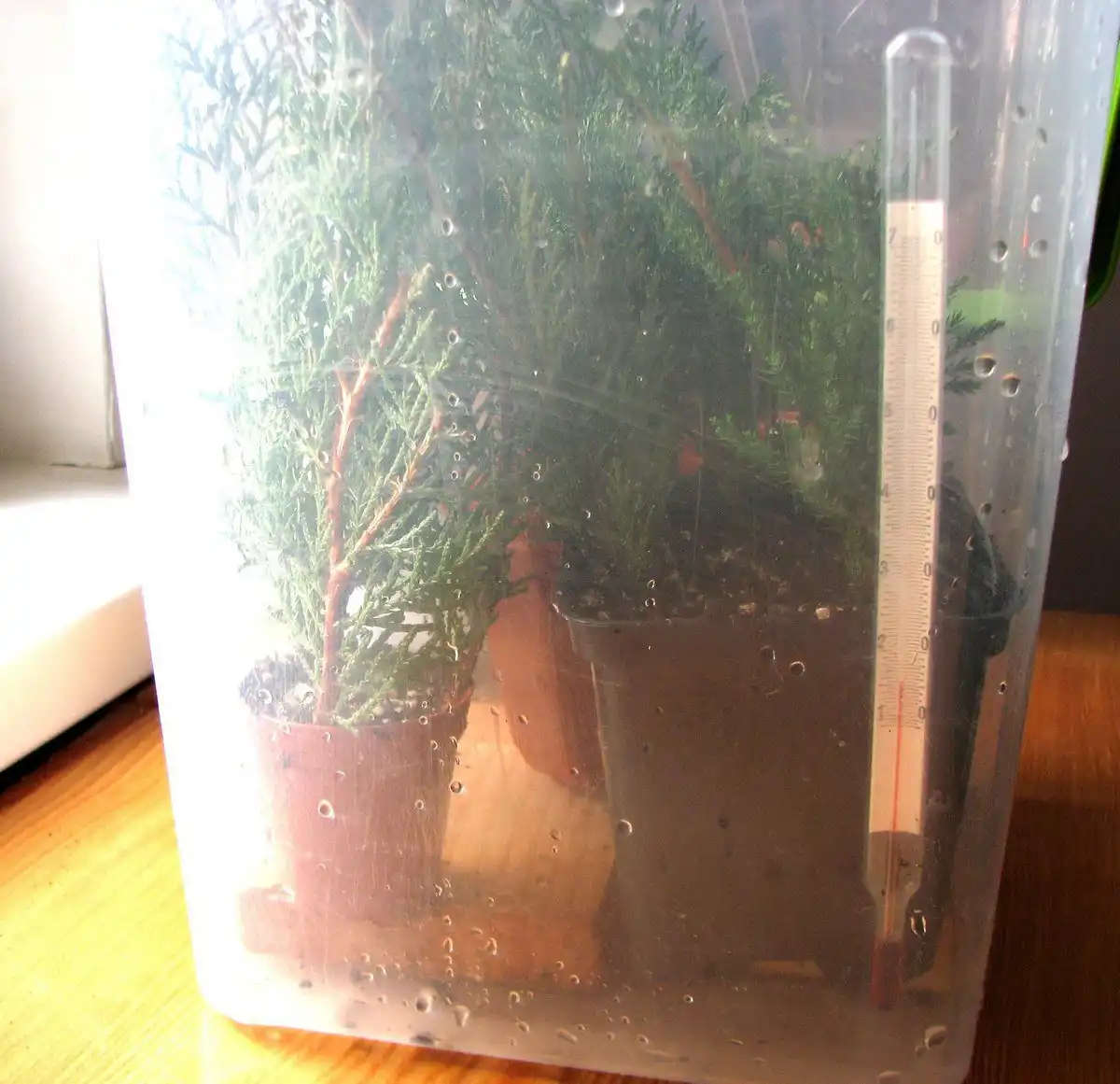 А як забезпечити високу вологість — запорука гарного вкорінення? Ємність з висадженими живцями, будь то ящик, контейнер або квітковий горщик (ємність обов'язково повинна бути з отворами для виходу води і надходження повітря до коріння) потрібно накрити прозорим, що пропускає світло, герметичним і утримує вологе повітря всередині. Рішень тут безліч. У аматорських умовах це скляні банки, обрізані пластикові пляшки (безбарвні), пеплівка.