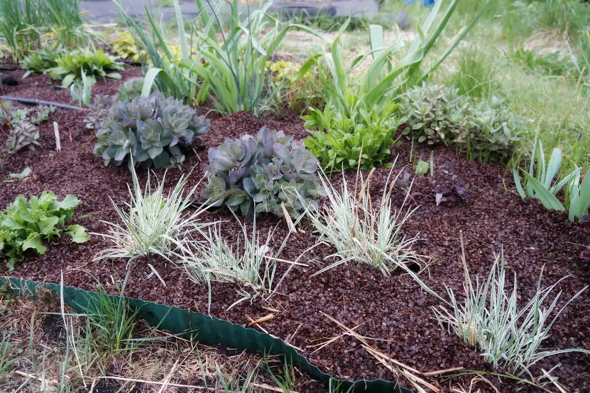 - незважаючи на низьку вартість, квітники під гречаним лушпинням виглядають добротно і стильно;