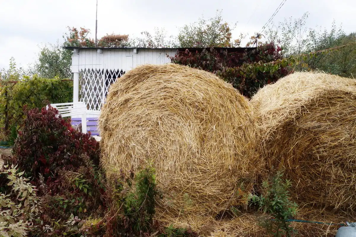 - Якщо ви не хочете отримати «газон» з бур'янів на городі, не потрібно використовувати свіжу солому, а дати їй постояти просто неба як мінімум рік; при цьому краще періодично добре проливати тюки, щоб насіння, що міститься, проростало;