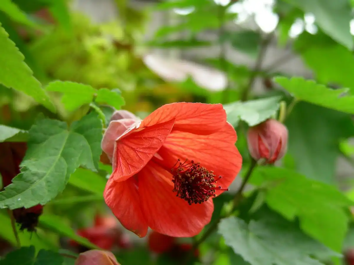 Завдяки листю ця рослина і отримала своє народне прізвисько. Квітки абутилону легко впізнати за їх особливою, келихом або чашоподібною формою. Пелюстки віночка зростаються у ліхтарик або дзвіночок, квітки завжди поодинокі. Абутилони настільки популярні завдяки зворушливим витонченим бутонам, пишним пильовикам і тичинкам, що зрісся з маточкою і виступає з віночка. Ця кімнатна рослина пропонує насолодитися зворушливими деталями.