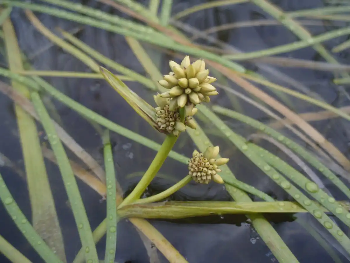 Щоголовник плаваючий (Sparganium natans) - водно-болотний багаторічник з пагонами довжиною до 80 см, що змінюють форму залежно від глибини посадки. Лінійне листя з напівпрозорою текстурою найчастіше згинається, плаває навіть у наземної форми. Укорочені суцвіття дуже ефекти, як і дрібні зелені кульки плодів.