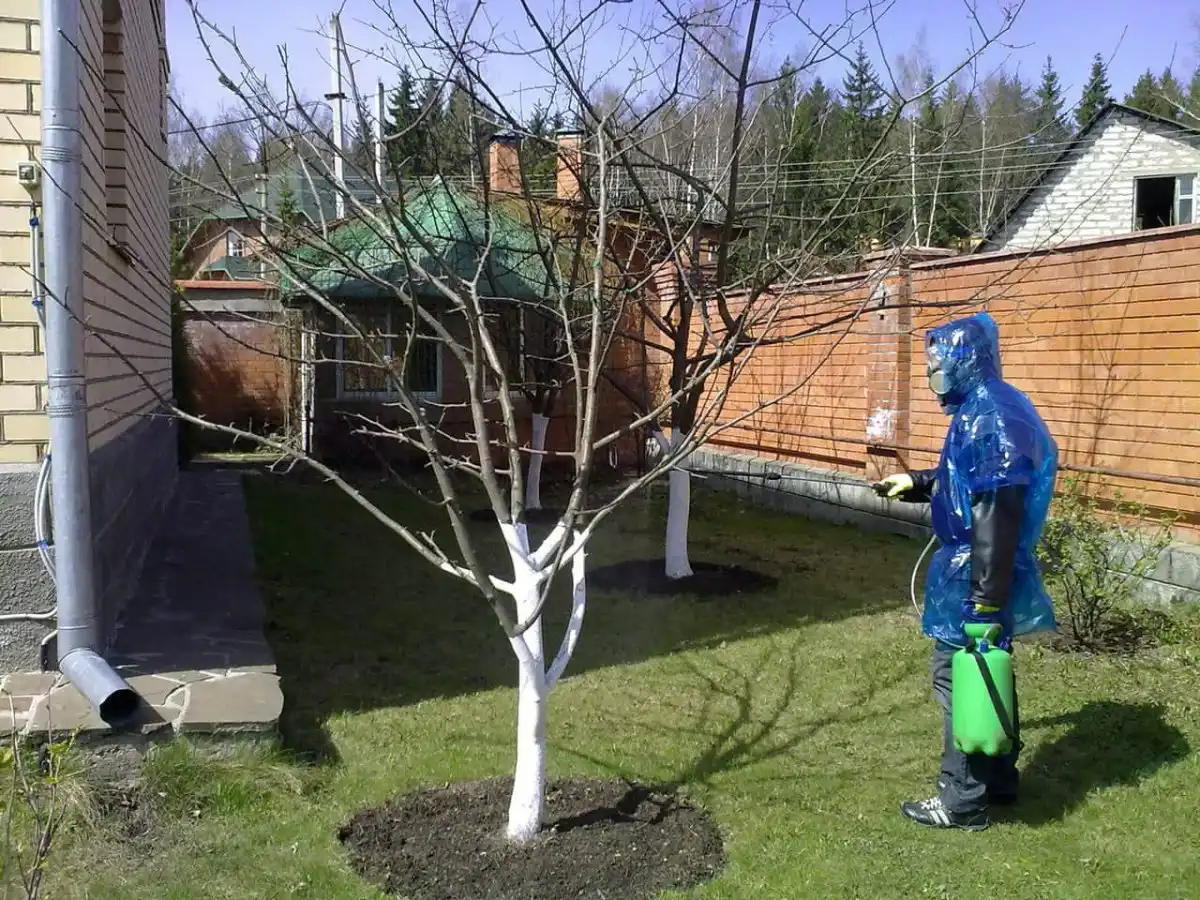 До обробки дерев та ягідників проводять усі санітарні підготовчі роботи: видаляють стару кору, а також гілки, хворі, засохлі, що ростуть усередину крони та кущів. Обробляють дезінфікуючими розчинами зрізи та рани, а після підсихання зафарбовують фарбою або закладають садовим варом.
