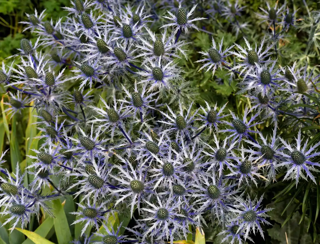 Ерингіум, або синьоголовник (Eryngium) - Чудовий трав'янистий багаторічник, який часто приписують до культурних будяків, але все ж заслуговує куди більш поважного відношення. Досягаючи заввишки від 30 до 100 см, ерінгіум підкорює своїм невагомо-мереживним виглядом.