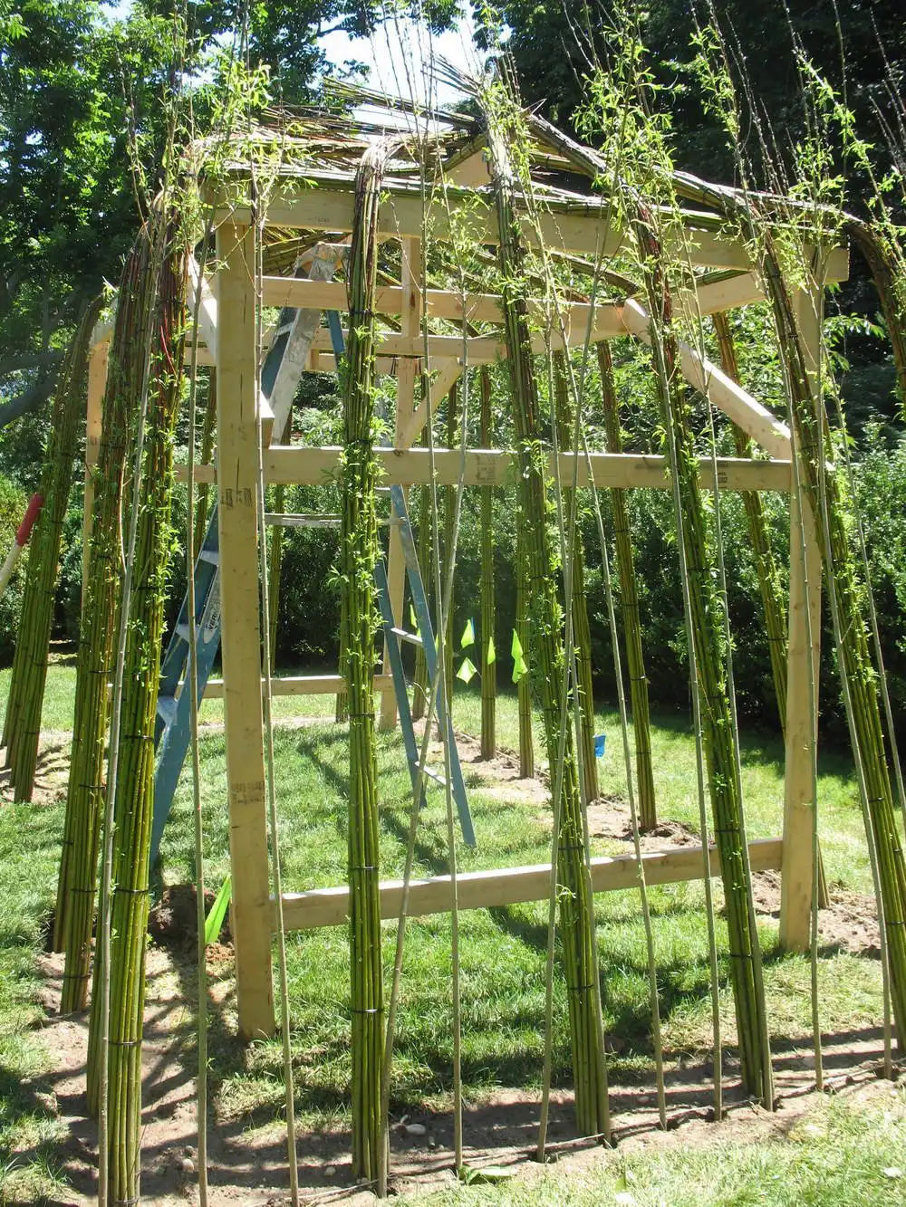 Таким чином створюють щільне коло з дерев, що ростуть поруч. Коли сформується досить висока і щільна основа, при бажанні створюють зелений дах, збираючи в пучок і заплітаючи всі верхівки у кожної рослини і стягуючи їх до центру майбутнього даху із закріпленням на протилежних кілочках. Коли основа готова, приступають до найцікавішого — висаджування ліан для прикраси такої живої альтанки та видалення опорних кілочків.