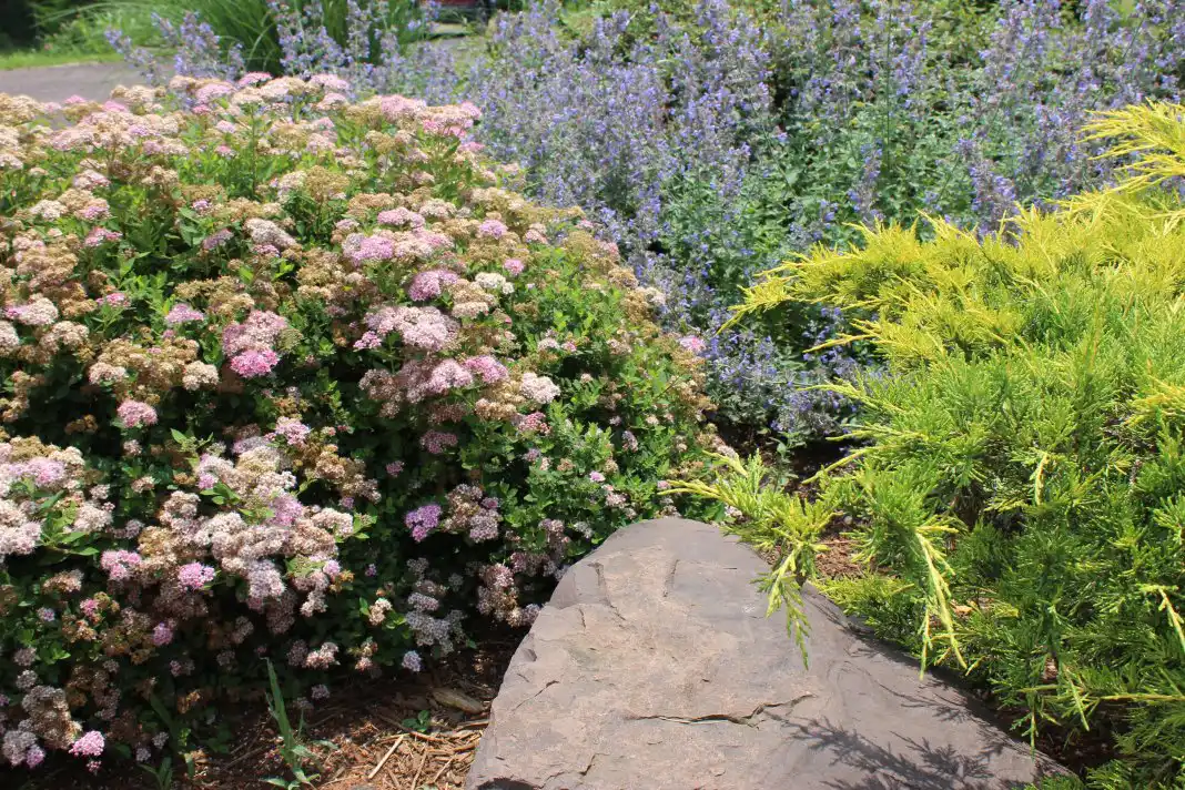 Для альпінаріїв та рокаріїв краще вибирати спіреї з найнижчими кущами та найбільш щільними кронами. Найкращі кандидати – спірея сіра, білоцвітна, японська, Вангутта (вибирайте компактні сорти).