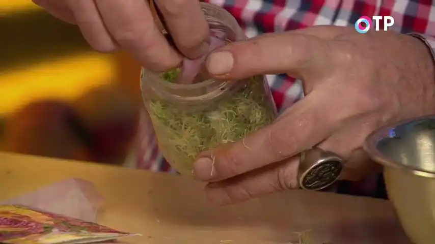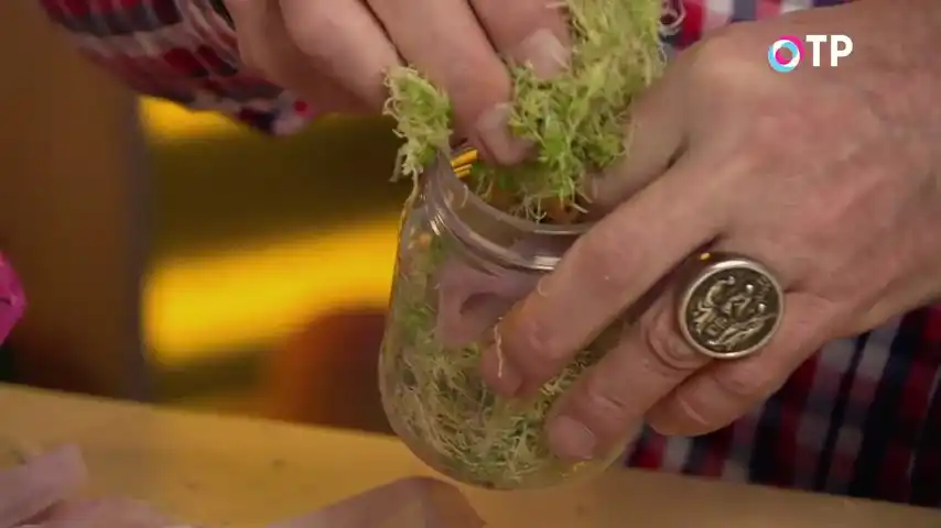 Ось у воді у вас це насіння постоять, скажімо, 12 годин, 24 години – нічого страшного. Вони добре розмокнуть, після чого ми повинні помістити їх в інертний субстрат. Інертним субстратом може бути торф, мох, може бути річковий великий пісок, можуть бути камінці, наприклад, зараз продається гравій. Таким чином ми в баночку поміщаємо мох. Мох у нас вологий. У центральну частину ми поміщаємо наше насіння, щоб воно не розсипалося, і прикриваємо ще зверху це насіння мохом. Закриваємо щільно кришечкою. Цю баночку ми повинні помістити тепер у целофановий пакет для того, щоб точно гарантовано знати, що не буде випаровуватися волога через зазорчики в кришці.