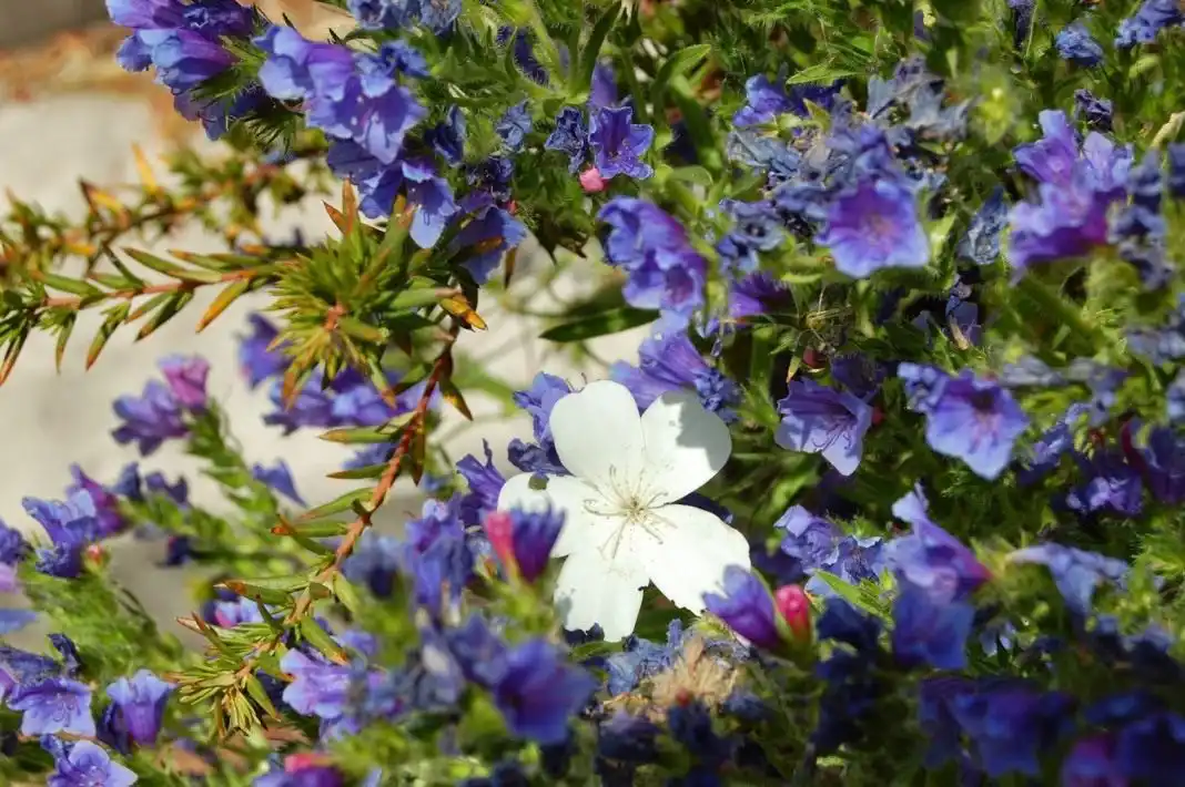 Для комбінації з Вересками (Calluna) та іншими типовими мешканцями верескового саду краще вибрати Горечавку китайську прикрашену (Gentiana sino-ornata). І що більше її сортів ви знайдете, то краще. З серпня і до кінця осені на тлі неповторних текстур у цьому чарівному куточку буквально блискатимуть всі відтінки синього — від блакитного до ультрамарину.