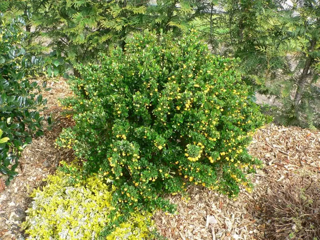 Надзвичайно ошатні Барбарис самшитолистий (Berberis buxifolia) та Барбарис сизо-білий (Berberis candidula). Низькі чагарники, розлогі, всього 0,3-0,5 м заввишки, вічнозелені з оранжево-жовтими і жовтими квітками, синіми плодами - чудові влітку і яскрава прикраса зимового ландшафту.