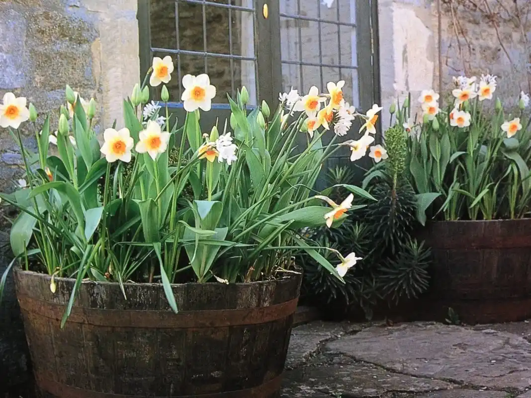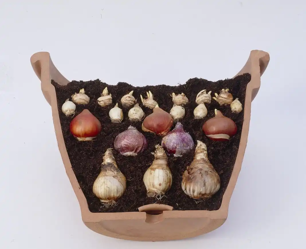 Більшість садівників вважають за краще закладати рослини для саду з весни. Але вважати, ніби цибулини найулюбленіших весняних зірок — крокусів, нарцисів, тюльпанів і навіть мускарі можуть перезимувати лише у приміщенні чи ґрунті на клумбі чи рабатці було б великою помилкою. Для саду для горщика рослини краще висаджувати в ті ж терміни, що і для відкритого грунту. Переваг у цієї стратегії чимало:
