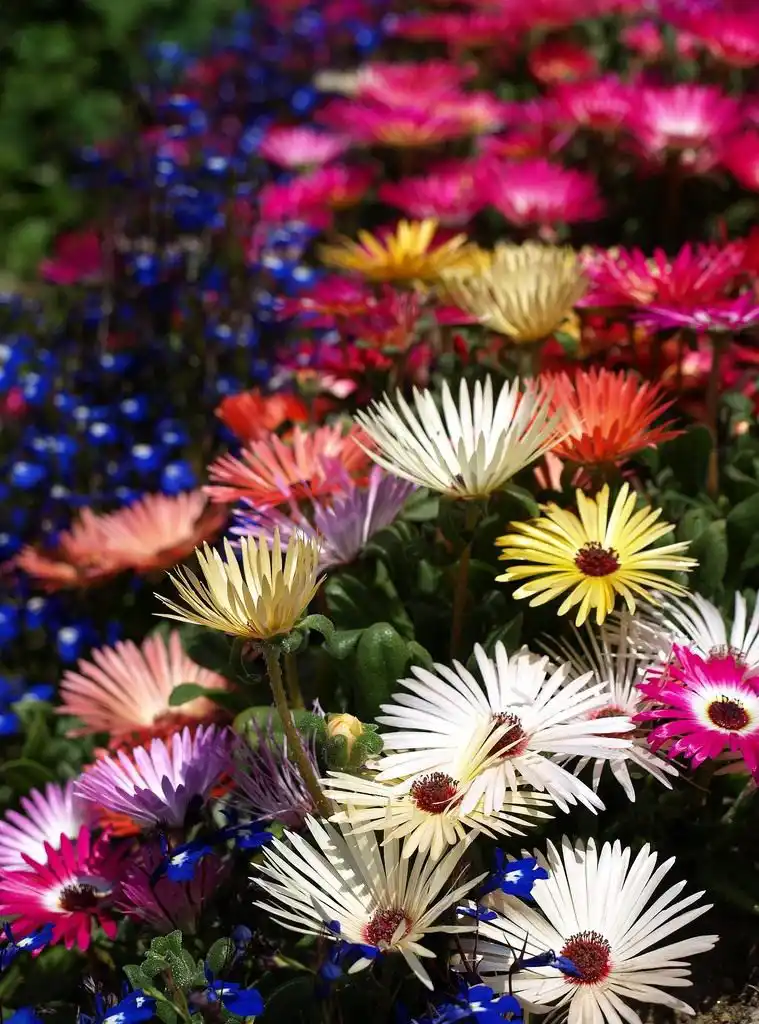 - Доротеантус маргаритковий (Dorotheanthus bellidiformis) – літник, що стелиться, висотою всього близько 10 см. Назад яйцевидне, викривлене сукулентне листя в довжину досягає 7-8 см. Квітки-кошики діаметром до 4 см розпускаються на високих квітконосах, красуються майже чорною серединкою, дуже ефектними, яскравими ж оранжевими - абрикосовим. пр. Цей доротеантус обожнює піщані ґрунти і здатний у сонячну погоду затьмарити будь-яких сусідів.