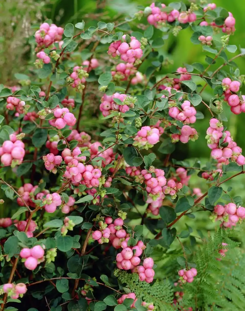 - сорт 'Magic berry' - унікально яскравий для сніжноягідників, з пурпурно-червоними, сяючими плодами та досить інтенсивним рожевим забарвленням суцвіть;