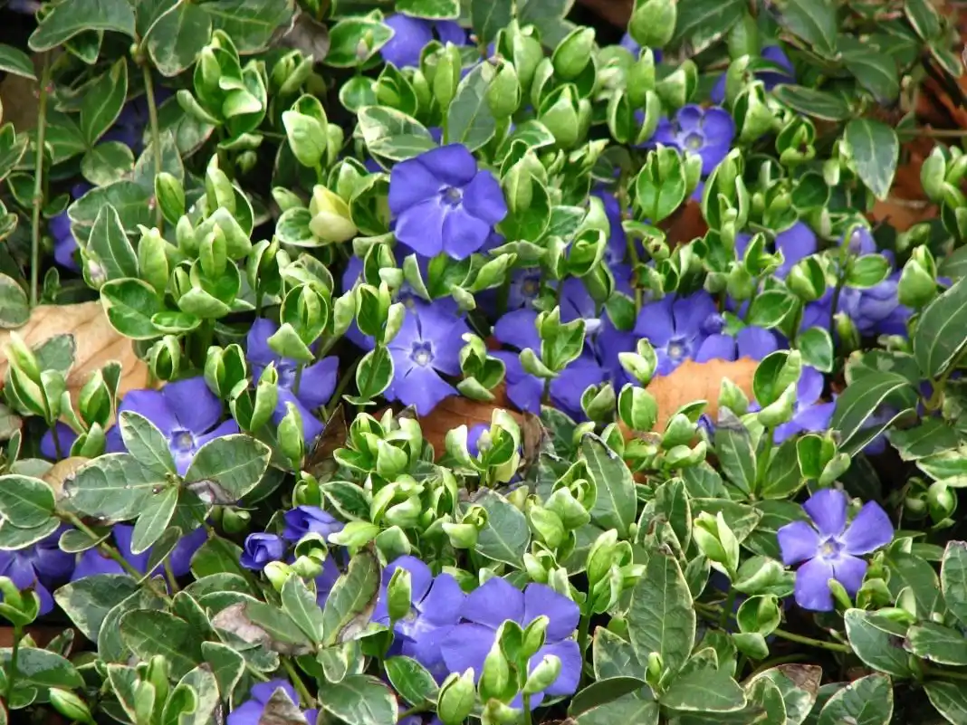 У багатьох країнах саме поминальною рослиною вважають барвінок. Барвінок малий (Vinca minor) чудово росте в тіні, під покровом типових деревних, що часто використовуються в оформленні кладовищ – беріз, ялин, кипарисовиків, туй, горобин. Він не боїться ні нестачі світла, ні більш яскравого розташування, невпинно розростається і має вічнозелене листя. А зворушливі лійчасті квіти, що своїм сліпучим блакитом суперничають з весняним небом, виглядають особливо пронизливо на тлі темного глянцевого листя. Ця рослина, що вважається символом пам'яті, вічного кохання, наділяється магічним і міфологічним значенням і більш ніж доречно в оформленні цвинтарів.