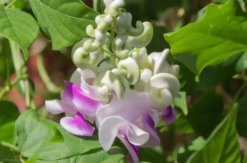 Вигна Каракалла (Vigna caracalla) – прекрасний представник сімейства Бобових з-поміж багаторічних ліан. Кучеряві пагони цієї культури досягають у довжину 5-7 метрів. Листя у виноградного равлика дуже красива: трироздільні, з тонкими загостреними кінчиками, темне зелене листя створює вражаюче барвисте, мереживне і щільне тло для розкішного цвітіння. А глянсовий відблиск лише підкреслює красу рослини.