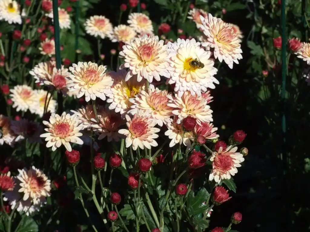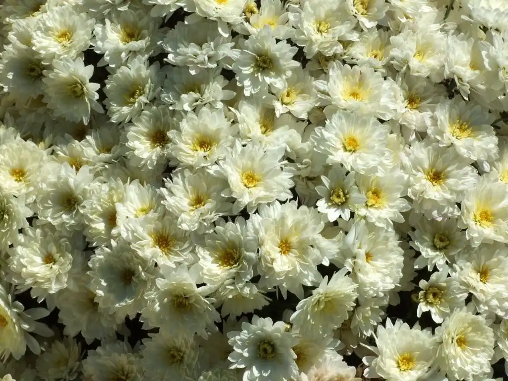 Таким же розкішно-махровим, рясно квітучим, але вже кольором променів літнього сонця є інтродуктивний сорт Axima Yellow. А ось кущі напівмахрової бордюрної хризантеми. Fantasy привертають увагу не тільки неймовірно пишним квітковим оздобленням, але поєднанням ніжно-рожевих пелюсток із чітко окресленою жовтою серединкою. З сортів з білими квітками можна відзначити досить ранню, напівмахрову. Paradiso White.