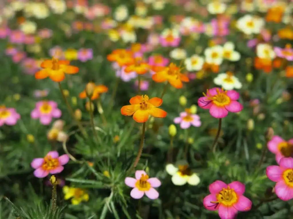 Кольорова палітра лептосифону – окрема гордість рослини. Адже на кущику одночасно розпускаються квіти різних забарвлень. Але при цьому лептосифон не виглядає як строката і кричуча рослина. М'які відтінки оранжевого, рожевого, жовтого, вміло відтінені сяючим білим інакше, ніж фарфоровими, не назвеш.