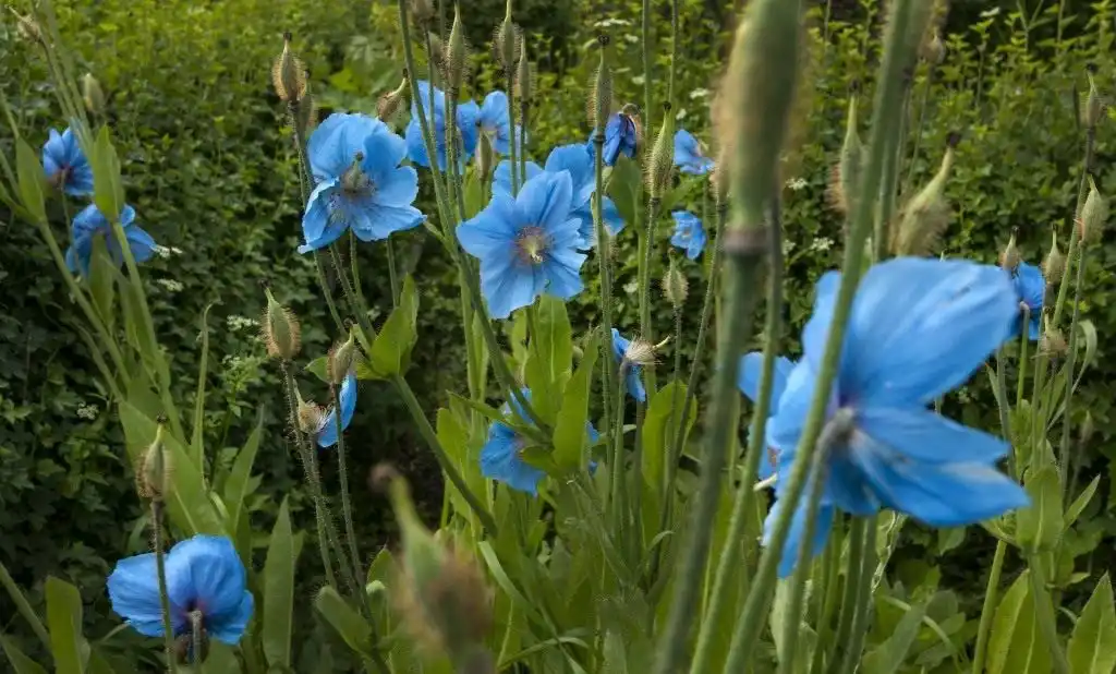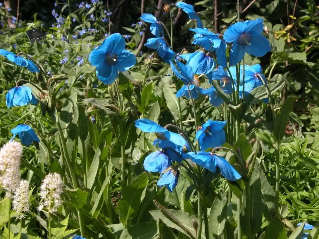 - Меконопсис буквицелистий (Meconopsis betonicifolia) зацвітає у червні-липні яскраво-блакитними квітками до 10 см у діаметрі. Цвітіння триває 2-3 тижні. Виносить морози до -18 ºС. Має багато сортів та гібридів, що відрізняються розмірами та відтінками квіток.