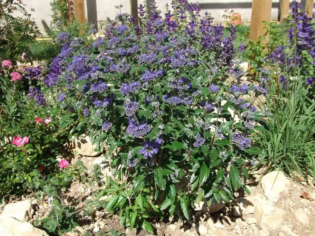 Найкращим сортом каріоптерису, придатним для прикраси клумб і квітників усіх форм і розмірів, по праву вважають легендарний сорт «Blauer Spatz». Каріоптеріс чудово почувається тільки в якісному дренованому грунті і на добре освітлених місцях і навіть легка півтінь йому не підійде. Ранньою весною каріоптериси, квітники, що прикрашають, бажано піддавати сильному обрізанню для постійного оновлення крони, посилення цвітіння і регулярного омолодження.