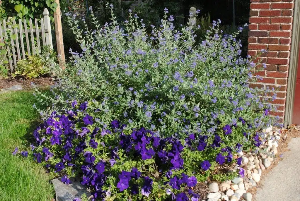 Квітучий каріоптеріс немов прикрашений синіми хвилями розкішних квіток і швидко виправдовує свої прізвиська - "синя борода" або "сині вічка". Цей чагарник — один із найкращих видів для створення так званих водних ефектів. Дійсно, каріоптеріс викликає асоціації з синім морем, вносить у композиції «точки прохолоди» і заспокійливо впливає на ландшафт. Приглушена, сизувата зелень дуже акуратного куща ідеально підкреслює численні яскраві квітки насиченого синього забарвлення, зібрані в компактні мутовки і кущ, що ніби вкриває, покривалом.