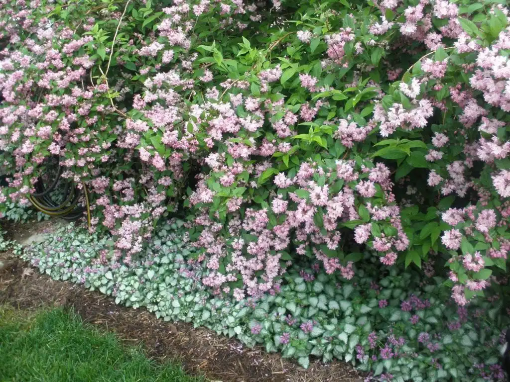 Рослин, що відповідають цим параметрам в асортименті садових чагарників не так вже й мало. Але далеко не всі квітучі зірки в представництві компактних сортів здатні рости практично в будь-яких умовах, типових для класичних клумб. З величезної кількості видів з сортів ми пропонуємо вам вибрати 3 найбільш надійних, перевірених часом і універсальних чагарників, які з легкістю стануть прикрасою будь-якої квітучої композиції. рожеву дейцію, каріоптеріс і ракітник чорніючий.
