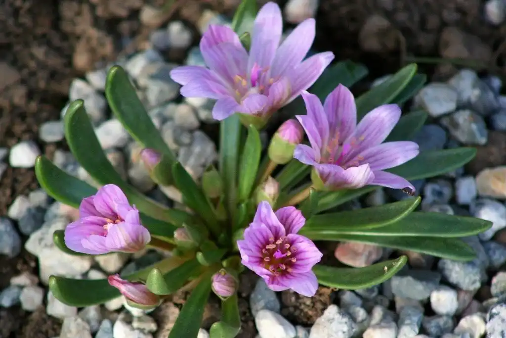 - левізія оновлена (Lewisia rediviva) з розкішними 5-7-сантиметровими квітками, що пропонує помилуватися на всі відтінки рожевого спектру від майже білих до насичених. Квітки у неї розпускаються над розеткою листя тільки в сонячні дні (дуже примхлива до вологості взимку);