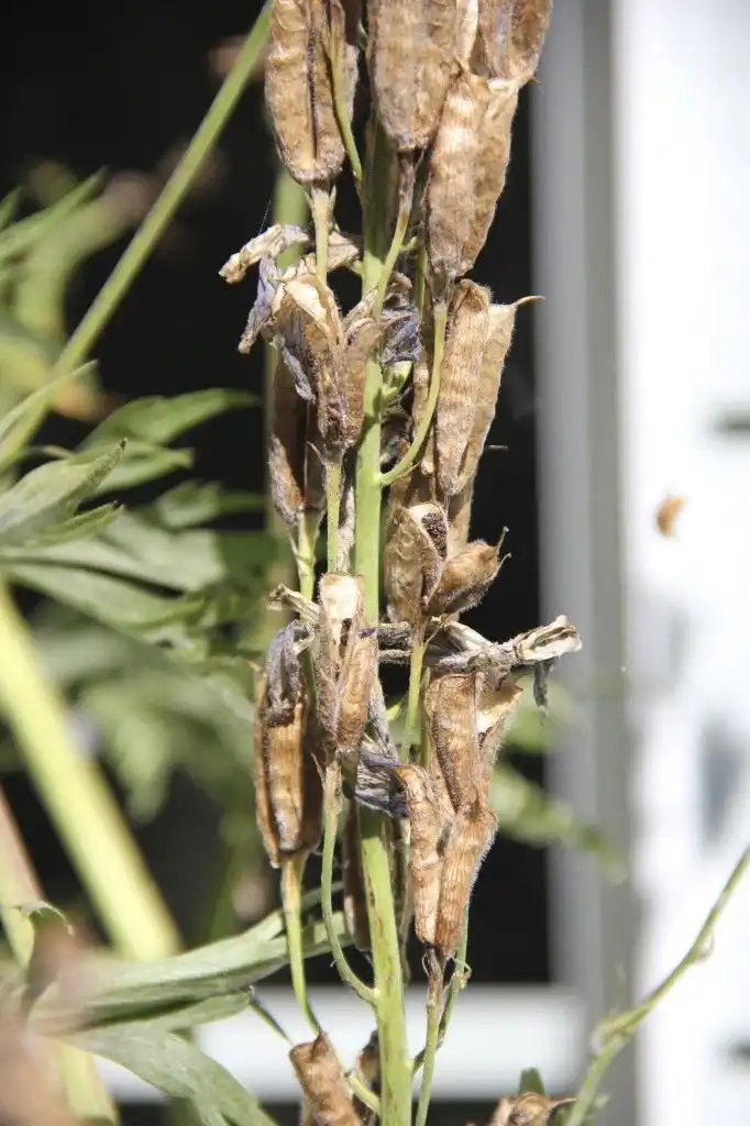 У дельфініуму насіння зав'язується напрочуд легко і як правило з кожної рослини з 4-5 суцвіттями можна зібрати до 800 насінин. Але далеко не всі насіння вийдуть однаково якісними. Для того щоб зібрати дійсно хороше насіння, та й сам процес не призвів до погіршення розвитку рослини, не позначився на якості підготовки до зимівлі, потрібно не дати дозрівати всім насінням у суцвітті. Залишіть у свічках дельфініуму лише 10 -15 листівок у нижній частині суцвіть і не дозвольте їм прокидатися на землю (дельфініум дає рясна самосівка, а насіння дуже швидко проростає).