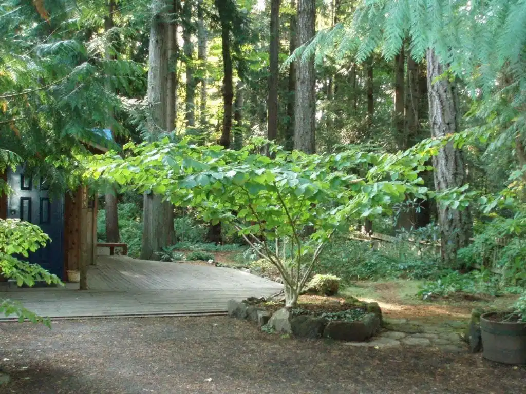 Компанія таких деревних ніби дозволяє позбутися всього зайвого, створює відчуття захищеності та повернення до витоків. Недарма дивовижний вплив на емоційний стан надають приморська сосна і італійська пінія. Їхня парасолькова форма крони — найкращий приклад дерева-антидепресанта, що випромінює особливу енергію. Але в регіонах із суворими зимами у них є альтернатива – сумах пухнастий, парротія перська, гамамеліс віргінський, стрижені форми деревних, зокрема хвойних з високим стовбуром і зонтикоподібною кроною, що розширюється вгору.