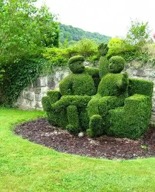 - Поодиноко посаджені солідні екземпляри самшиту стрижуть у вигляді геометричної форми або художньої фігури.