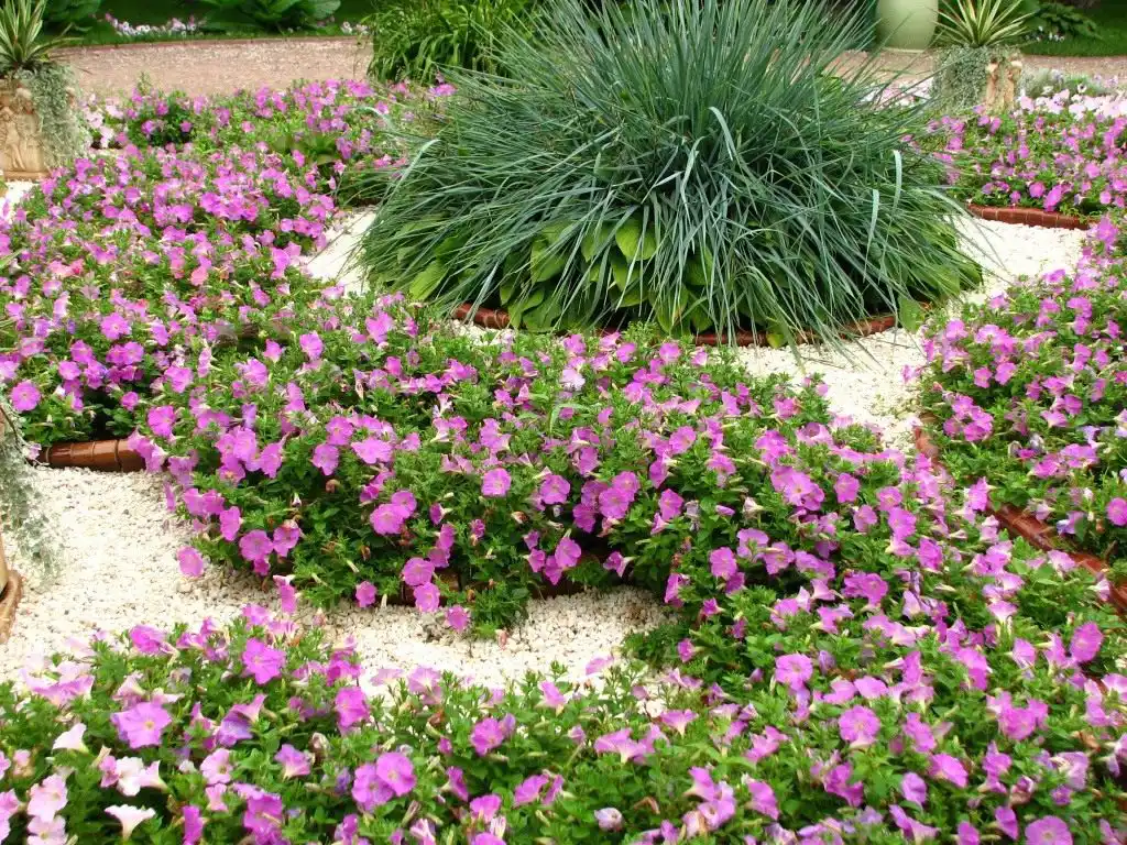 Але й у них є гідні конкуренти: напрочуд витончені суцвіття клеоми і вербени бонарської постійно перебувають у русі, немов танцюючи серед інших рослин і привносять в ансамблі ту саму уславлену магічність синьо-кольорових культур, таку цінну для сучасного дизайну. У магічній вибагливості ці літники не поступляться навіть багаторічним аквілегіям. Немов казковий килим із простими, миловидними і такими привабливими маленькими квітами виглядає дуже яскрава представниця фіолетово-квіткових літників сутера.