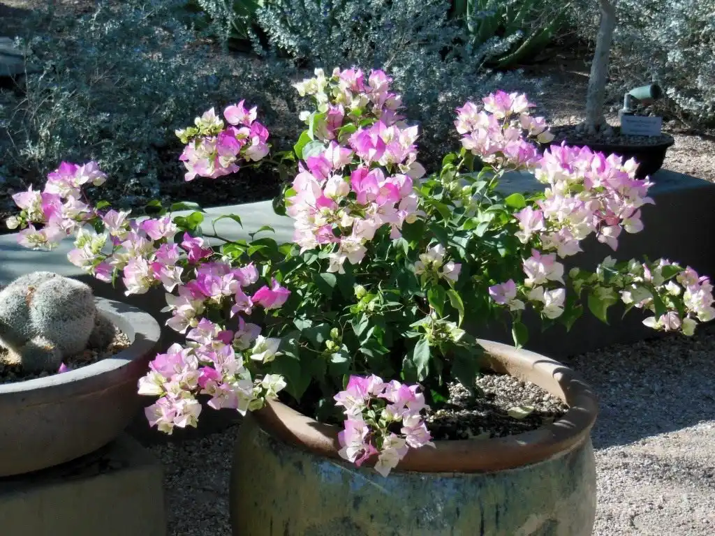 Кадкові бугенвілеї внаслідок нестачі світла, розмаїття умов вирощування і скорочення догляду на зиму зазвичай скидають все своє яскраве листя або лише частково його зберігають при дуже хорошому освітленні. Рослина протягом усієї зими і на початку весни перебуває у стані повного спокою, практично не подаючи жодних ознак життя. І часто навіть навесні, коли решта садових горщиків і діжок вже рушають у зріст, бугенвілея не випускає молодих пагонів і листя.