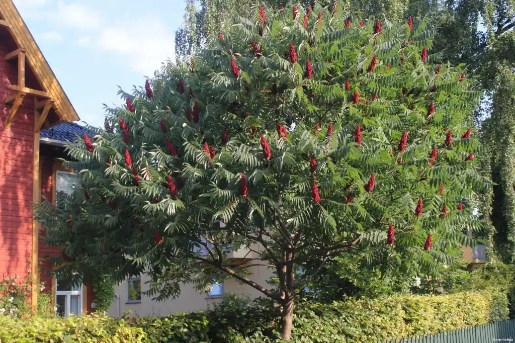Сумах може довго обходитися і без води, посухостійкий. Його пагони хочеться погладити, вони вкриті гарматою - восковим нальотом, що захищає рослину від палючих променів сонця. А що йому зробить сонце, якщо це виходець із Північної Америки?