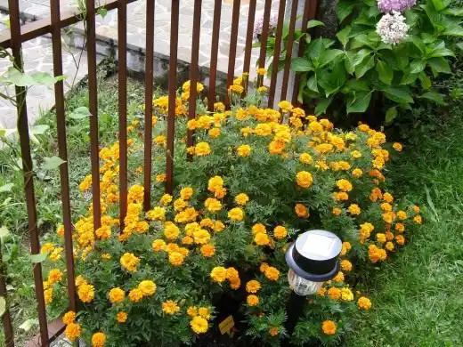 Однорічні квіти створюють на клумбі особливу атмосферу. Тагетес красиво виглядає як бордюрна рослина та вздовж доріжки. Вони ідеально доповнюють один одного за висотою та забарвленням. На першому плані красиво виглядають низькорослі чорнобривці, а високорослі, навпаки, звучать яскравим акордом у центрі або на другому плані.