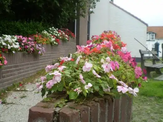 Бальзамін - Impatiens walleriana. Росте в напівтінистих і тінистих місцях, цвіте безперервно протягом усього року, дуже чутливий до похолодання, тому його рідко можна зустріти в саду. Особливо добре виглядає у судинах, які взимку тримають у не дуже прохолодному приміщенні біля вікна, а навесні виносять на відкрите повітря. Розсаду вирощують з лютого до квітня під склом, у теплі, після появи паростків температуру знижують, а сіянці пересаджують у судини на порівняно великій відстані один від одного. Трав'янисті живці материнської рослини зрізають і поміщають у суміш піску та органічного добрива під склом для вкорінення. Живці рослини цвітуть майже відразу після висадки. Найбільше для діжок підійдуть Orangezwerg, Scharlachzwerg, Rosazwerg - не більше 15 см заввишки.