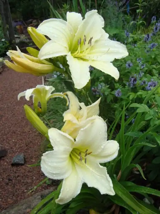 Добре всім відомий ірис болотний створює приголомшливий зоровий ефект поруч із лілійниками блакитних та бузкових відтінків: Принц оф Венус, Блу Найл, Сільвер Вейл. та ін Сибірські іриси, посаджені поряд з лілійниками, також підкреслюють їхню красу.