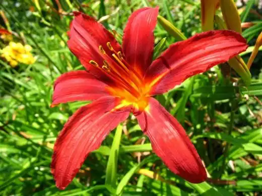 Пізнього літа чудово виглядають червоні сорти. Матадор, Гранд Опера, Джовіал поряд із крокосмією. Ще ефектніше червоні з жовтим горлом лілійники Атум Ред, Крістмас З, Таймлес Файр на фоні жовті енотери.