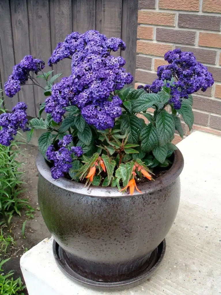 Одна з найкращих рослин для контейнерів – плющ звичайний (Hedera helix). Такі сорти як: «Тласе» з дрібним, трикутним, сіро-зеленим листям з рожевою або білою облямівкою; «Балтика» з блискучим, зеленим листям у білих прожилках; «Гоулд Харт» з дрібним, густо-зеленим листям, центральна частина якого забарвлена у світло-жовтий колір.