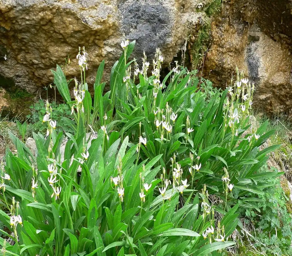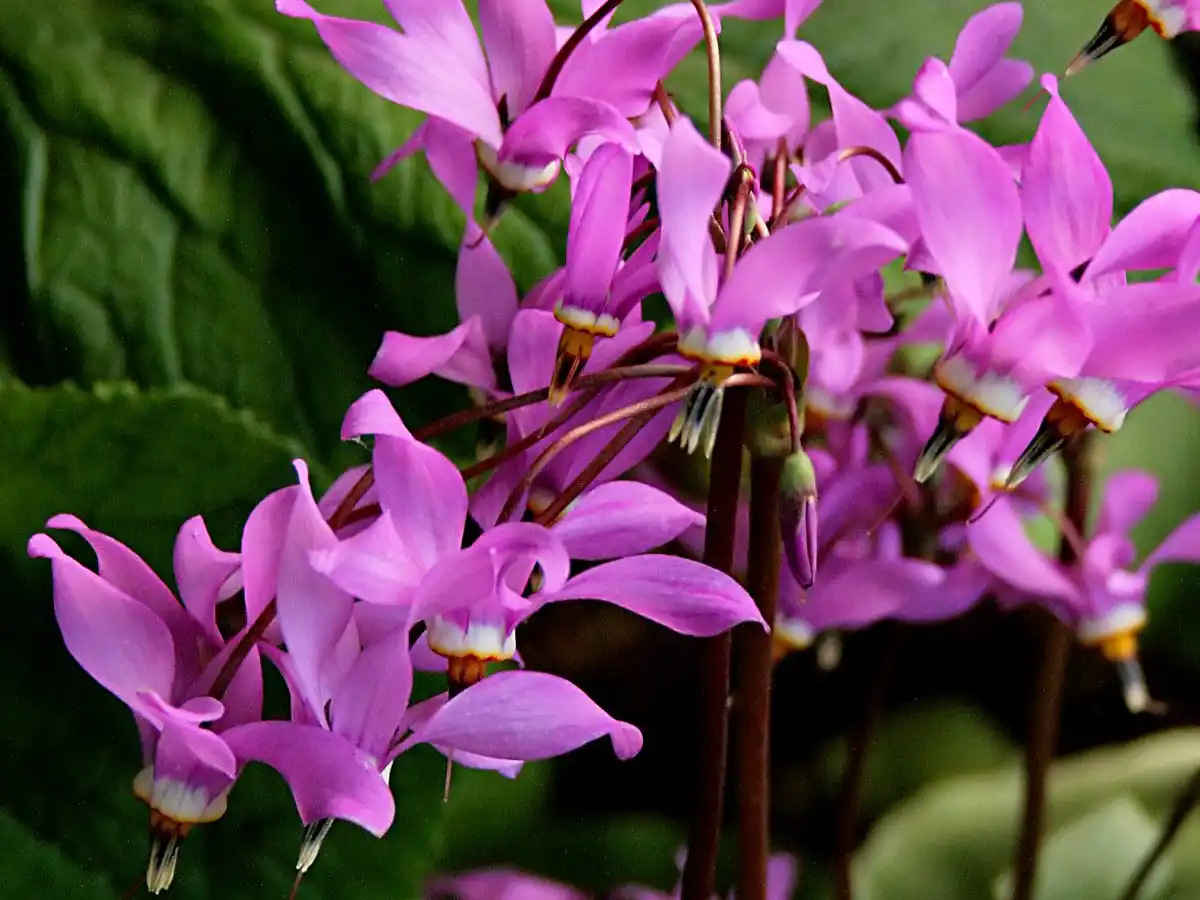 Росте він у вигляді компактної прикореневої розетки. Влітку над листям піднімаються стебла, що несуть квітки оригінальної форми: пелюстки, відкриваючи золоті пильовики, повністю відігнуті назад. І наукова назва у цієї рослини відповідає її зовнішньому вигляду та незвичайній формі — красивий додекатеон. У моїй колекції є рослини з ніжно-рожевим, рожевим та малиновим забарвленням пелюсток. Квітки дуже схожі на квітки цикламену.