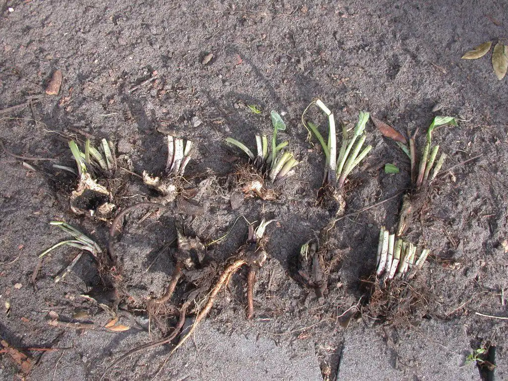 Обкопую кущ, що розрісся, вертикально на глибину багнета лопати в радіусі 30-40 см, виймаю з грудкою, обтрушую землю, обрізаю надломлене коріння, видаляю пошкоджені. Опускаю кореневу систему в 1% розчин мідного купоросу або блідо-рожевий розчин марганцівки, залишаю на 20-30 хв. Вийнявши з розчину, ділю кущ, занурюю ділянки в той же розчин, а потім у рідку глиняну бовтанку.