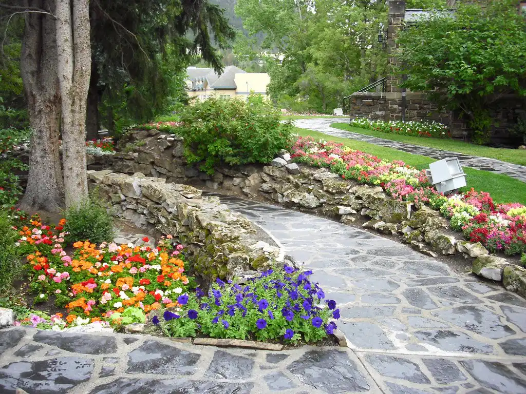 - На доріжках, що рідко використовуються, можна залишити проміжки між плитами, заповнивши землею і засіявши травою і однорічними квітами.