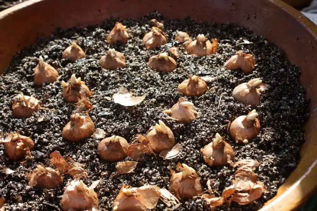 - Садити в один горщик бульбоцибулини одного розміру — при посадці «різнокаліберних» цибулин, цвісти вони, швидше за все, не будуть одночасно. Великі бульбоцибулини зацвітуть на кілька днів раніше, ніж дрібні.