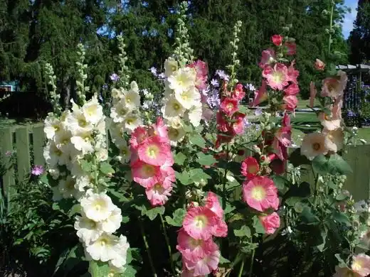 Мальва, або шток-троянда, - це висока рослина (до 2 м), з великими, напівмахровими і махровими квітками. Забарвлення - біле, рожеве, червоне, фіолетове, чорне, жовте. Квітки розташовані на довгій квітковій кістці. Починає цвісти з червня до глибокої осені.