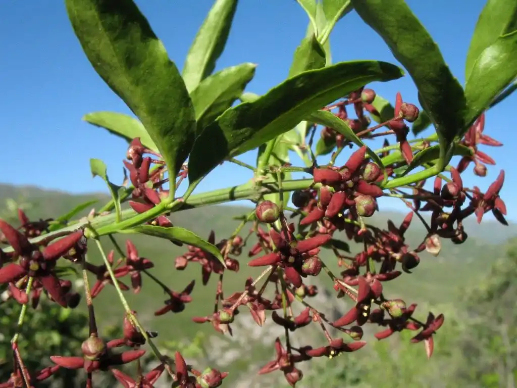 Батьківщина - гори Середньої Азії, де росте під пологом лісу. Чагарник висотою до 1 метра, що часто стеляться. Листя шкірясте, жовтувато-зелене, з короткими черешками, за формою яйцевидно-ланцетове, 1,5-6 см завдовжки і 0,5-2 см завширшки. Квітки дрібні, темно-пурпурові, із зеленими краями пелюсток, зібрані в невеликі парасольки на краях гілочок. Цвіте у липні, плодоносить у серпні. Тіневитривалість. Зимостійкий. Віддає перевагу тінистим місцям з помірною вологістю. Розмножується насінням.