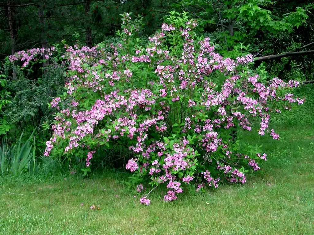 - Вейгела квітуча «Пурпуреа» (Weigela florida 'Рurрurеа', 'Foliis Purpureis') - чагарник від 1 до 1,5 м заввишки, з густою кроною діаметром близько 2 м. Листя еліптичні, коричнево-червоні, довжиною 6-8 см. Квітки темно-рожеві з жовтою серединкою. Цвіте у червні-липні. Росте повільно, зимує із укриттям.