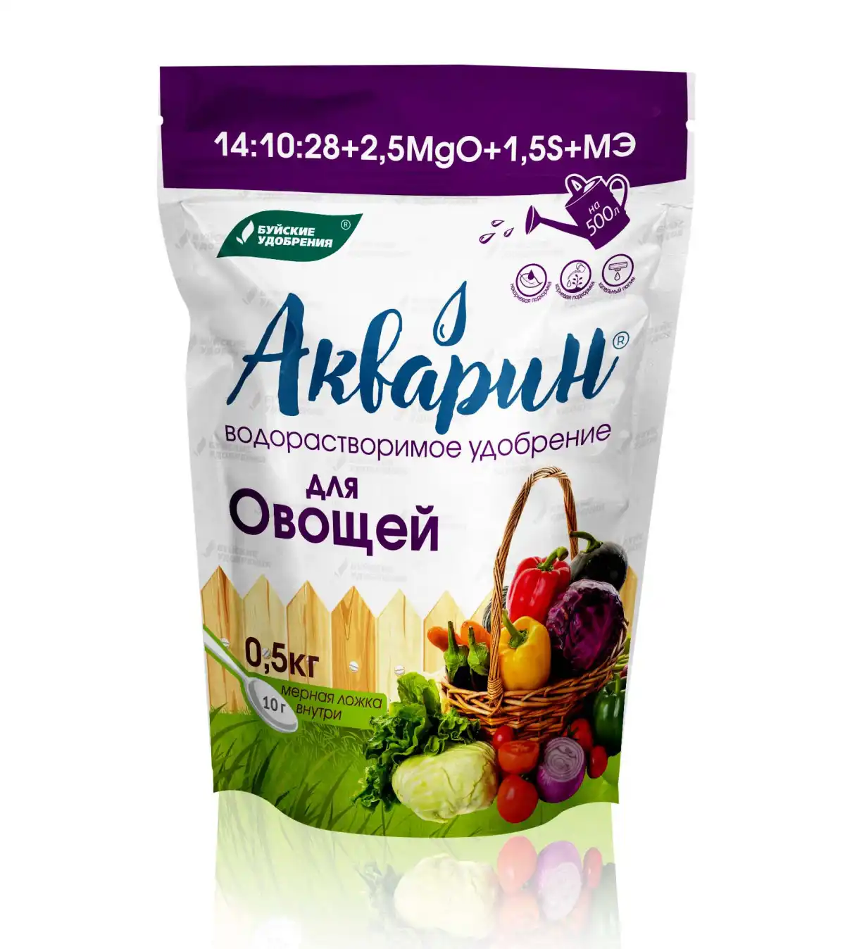 Склад набору та пам'ятка щодо дефіциту елементів живлення розміщені прямо на боксі, вони прості та зрозумілі. Набори від «Буйських добрив» допоможуть не залишити ваші посадки на голодному пайку, якщо поки що не закуплені чи не підібрані інші добрива, які максимально підходять для ваших умов.